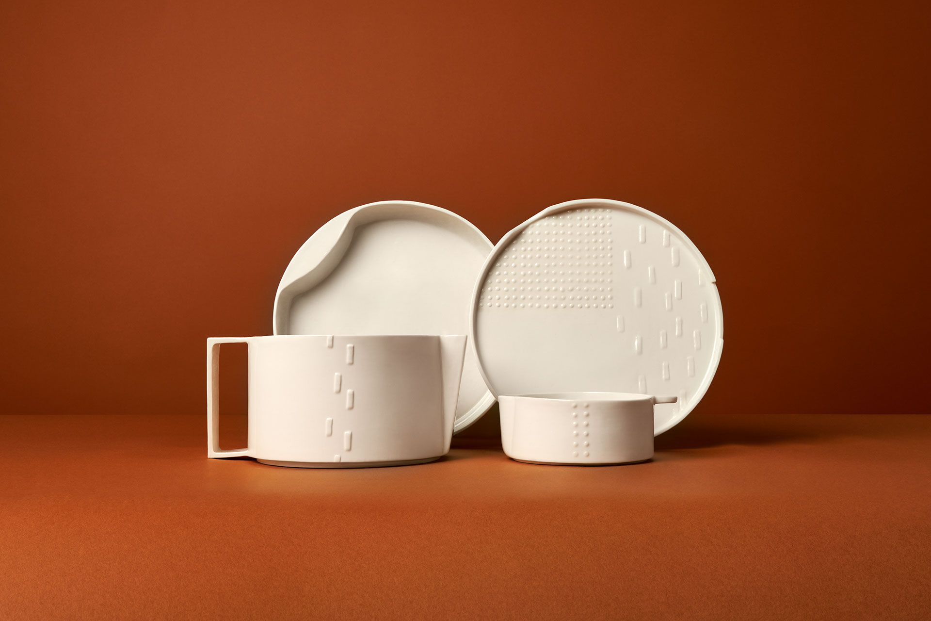 Tact est une collection de vaisselle et de linge de table tactile à l'usage de tous.